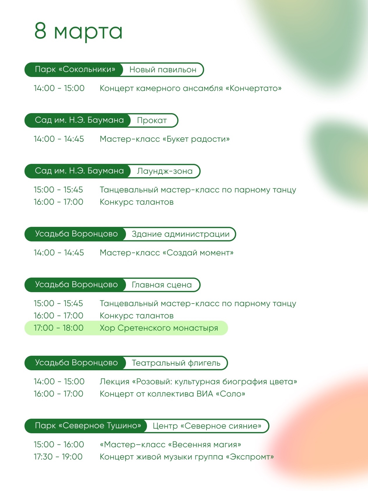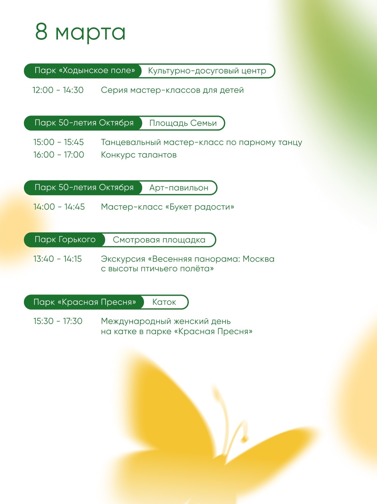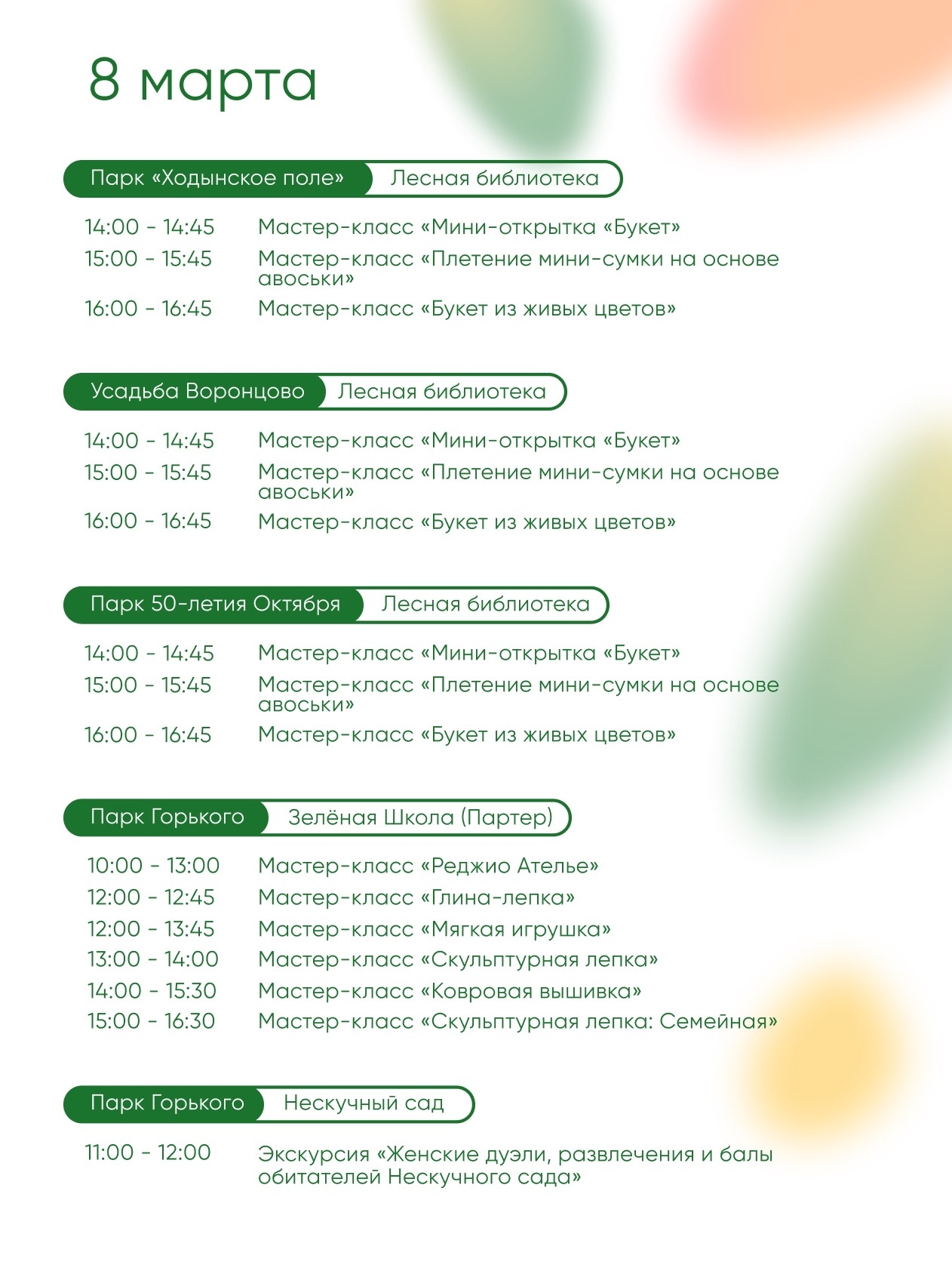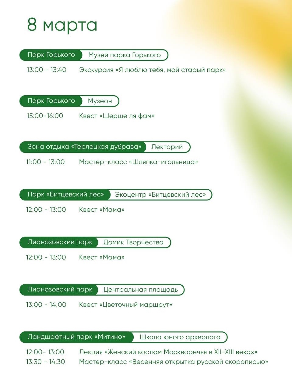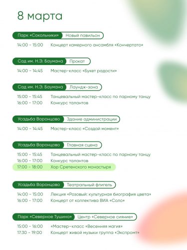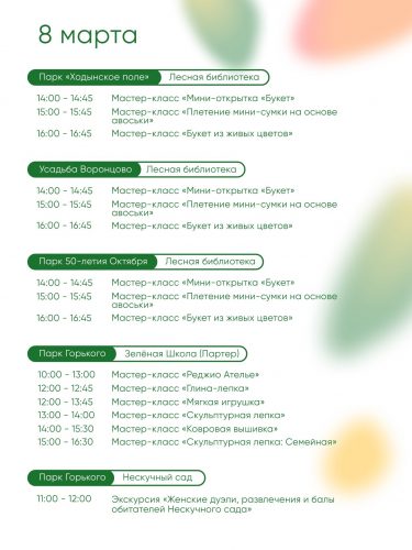 Завтра встречаемся в Парках Москвы — продолжаем выходные и отмечаем 8 марта вместе. Вас ждут тематические программы и приятные сюрпризы.