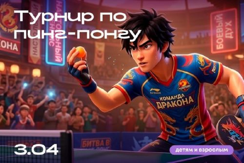 Любительский турнир по пинг-понгу 🗓 3 апреля с 19:00 до…