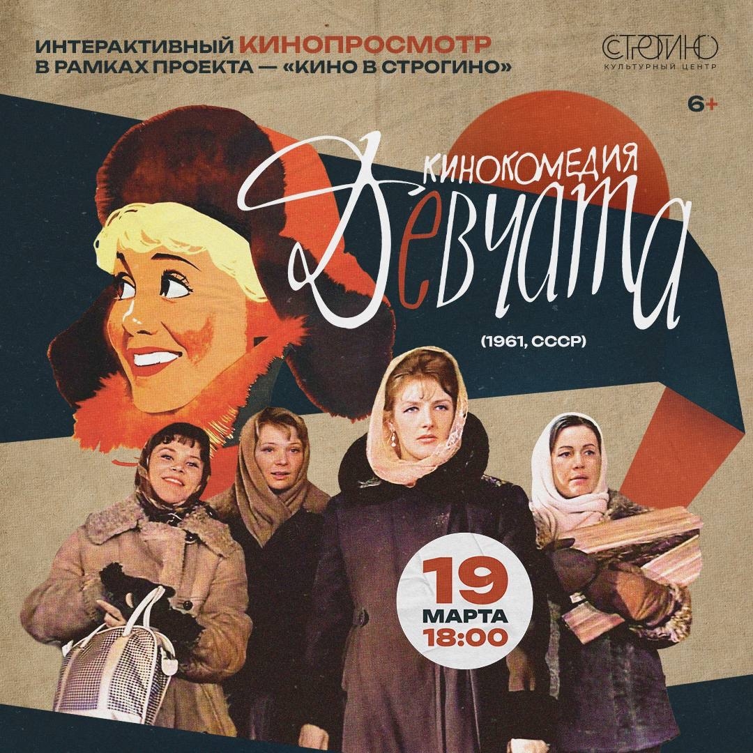 Март — время весны, любви и любимых фильмов. Приглашаем на интерактивный кинопоказ легендарной комедии «Девчата» (1961 г.) производства киностудии «Мосфильм» в рамках проекта «Кино в Строгино».